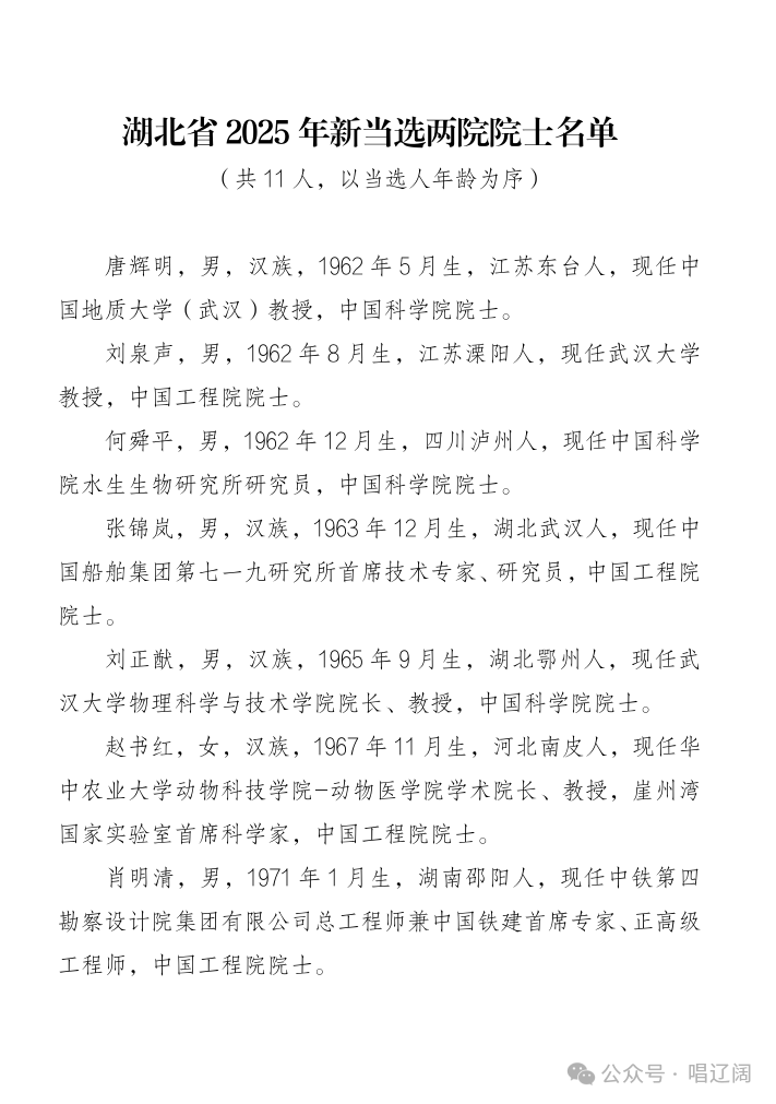 今天上午(11月21日)11名新院士的诞生,不仅刷新了湖北人才培养的纪录,也展现了湖北这片土地对科技创新的不断追求。从微纳制造领域的引领者到精密测量科学的探索者,从农业科技的农民到工程技术的征服者,“最强头脑”深耕各自领域,多次荣获国家科技奖。他们用系统性创新成果,为国家科技自立自强注入湖北力量。